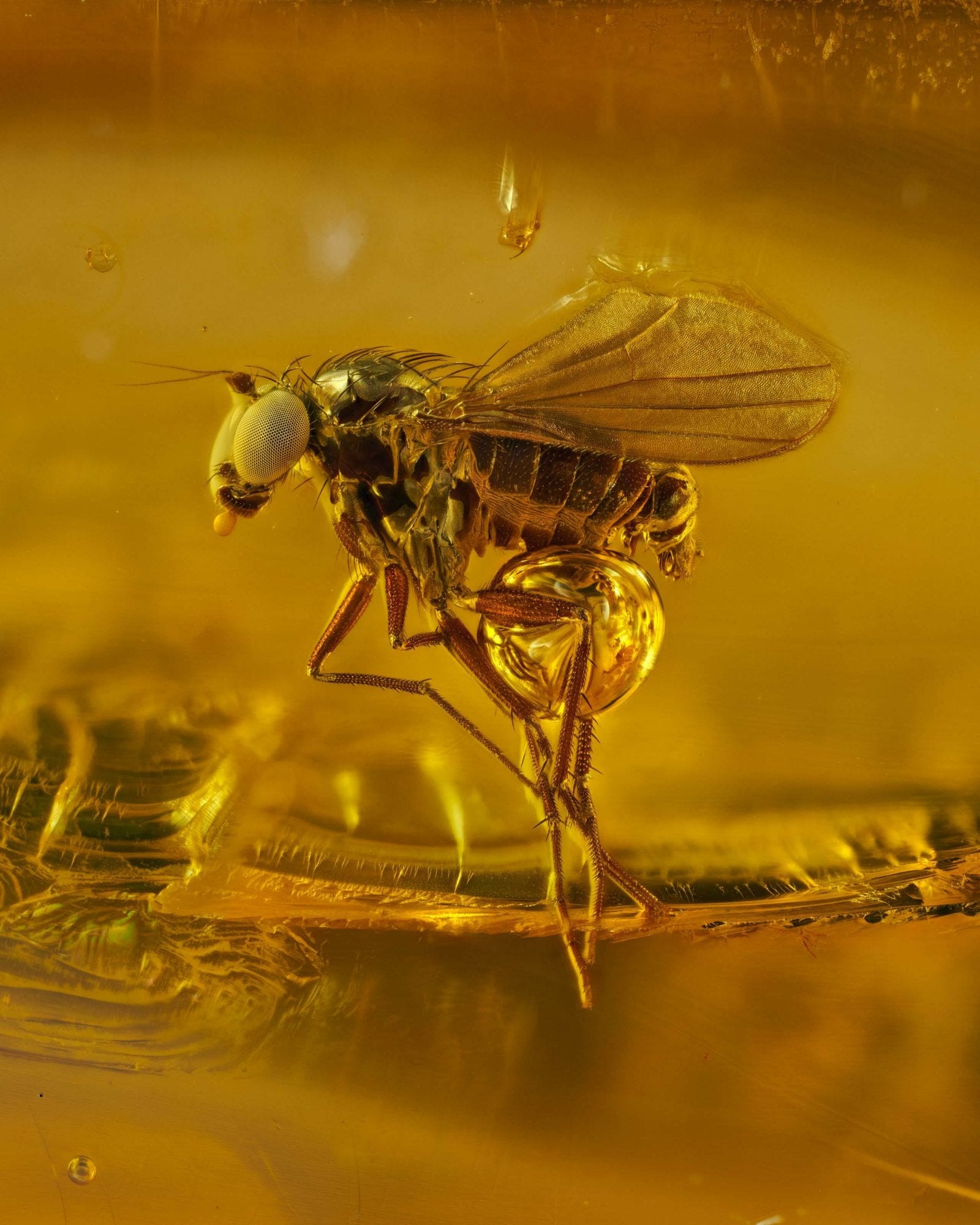 Această insectă minusculă are venerabila vârstă de 40 de milioane de ani. A trăit în perioada geologică a Eocenului, până într-o zi când când s-a prins într-un fir de rășină care a înconjurat-o. Rășina s-a transformat în chihlimbar, iar musculița a ajuns la noi perfect conservată în această capsulă a timpului.