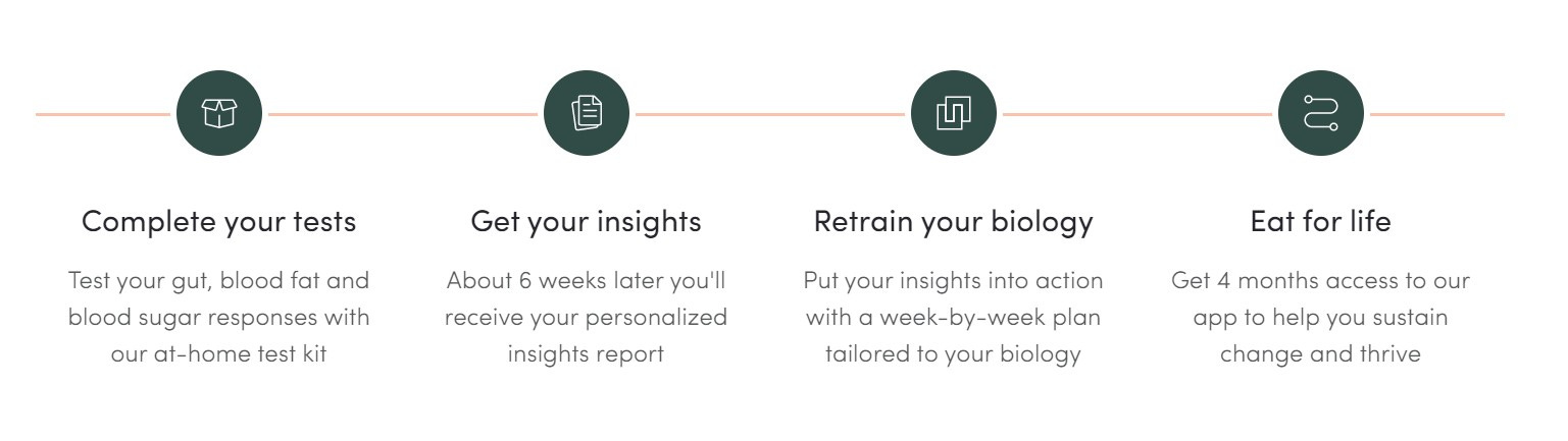 În acest caz, contra a câteva sute de dolari, primești acasă o cutie cu teste: pentru microbiomul intestinal (recoltezi o mică mostră de caca), de monitorizare continuă a nivelului de glucoză plus o cutie de brioșe special pregătite pe care trebuie să le mănânci, pentru ca laboratorul să își dea seama cum te înțelegi cu grăsimile și carbohidrații. După ce te testezi, trimiți mostrele, ți se face profilul alimentar și primești acces la aplicația mobilă Zoe. Zoe îți va spune dacă diferite combinații de alimente pe care le proiectezi în minte, cu poftă, nu sunt cumva toxice pentru tine.