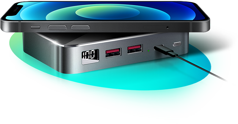 Încarcă până la cinci telefoane sau ceasuri: poate fi conectat simultan la două dispozitive în mod wireless și la trei dispozitive prin cablu USB. Se înțelege perfect cu gadgeturile Apple și cu cele wireless Qi.