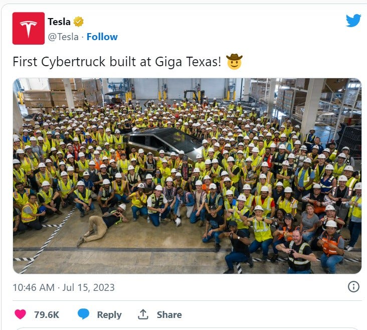 La aproape patru ani după ce Elon Musk a prezentat conceptul Cybertruck Tesla, un prim exemplar a ieșit zilele acestea de pe linia de producție din Texas. Evenimentul a fost anunțat fără vorbe multe pe Twitter: