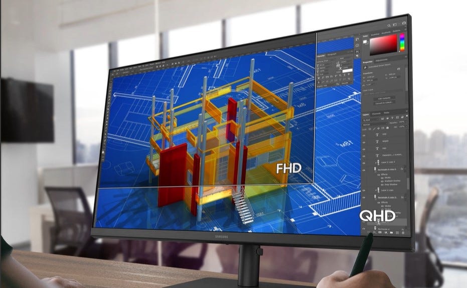 Ai un monitor Full HD pe birou? Felicitări! Dar se poate să faci un pas înainte, să știi, adică să-l înlocuiești cu unul de generație nouă, cu rezoluție QHD (2.560 x 1.440). Îți recomand un Samsung de 27” IPS, 16:9.