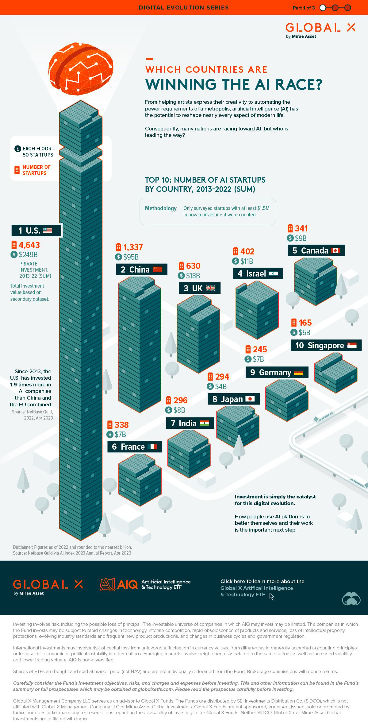 Topul națiunilor după numărul de startup-uri cu obiect de activitate inteligența artificială