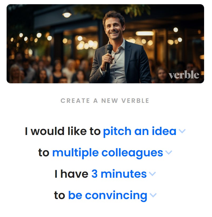 Este vorba de a ști ce vrei să spui și de a te simți suficient de confortabil pentru a prezenta ideile în mod autentic. După aceea, poți adăuga tehnici pentru a-ți face discursul și mai de impact. Acesta este principiul care stă la baza Verble: un instrument care vă sprijină de la început până la sfârșit să aveți o prezentare convigătoare” - spune Devin van den Berg, fondator și public speaking coach.