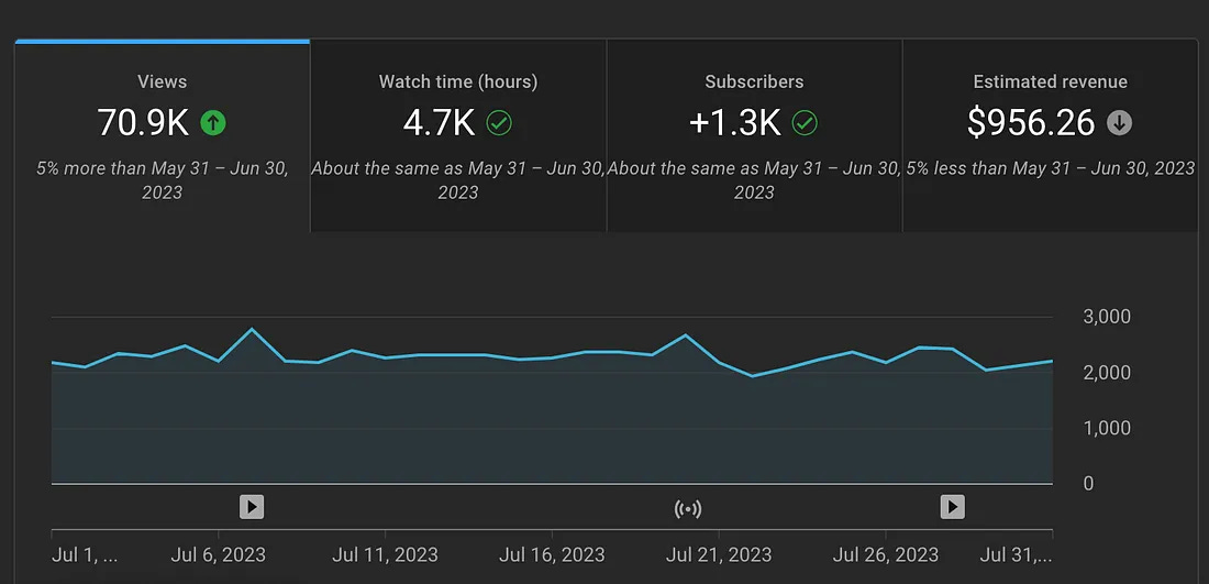Pentru a ilustra cu un exemplu, în iulie anul acesta, am avut în jur de 70k vizualizări, ceea ce mi-a adus 956,26 dolari (13 dolari pe mia de vizualizări)”: