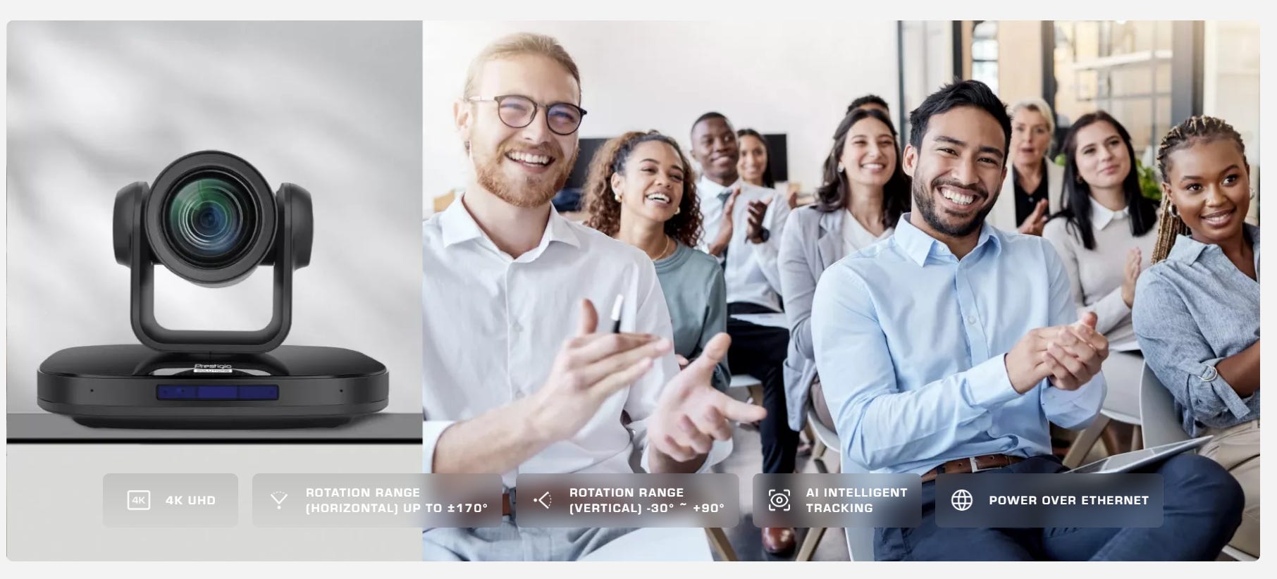 Noua cameră pentru videoconferințe de la Prestigio Solutions, cu nume de cod 4K PTZ Camera Alpha, este concepută pentru săli de meeting medii și mari, proiectate să găzduiască de la câțiva la zeci de participanți.