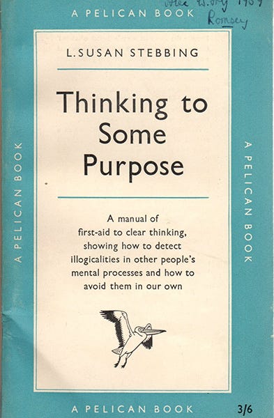 Tocmai ai citit o idee din cartea Thinking to Some Purpose, apărută în 1939, semnată de Susan Stebbing, prima femeie acceptată ca profesor universitar de filosofie în Marea Britanie.
