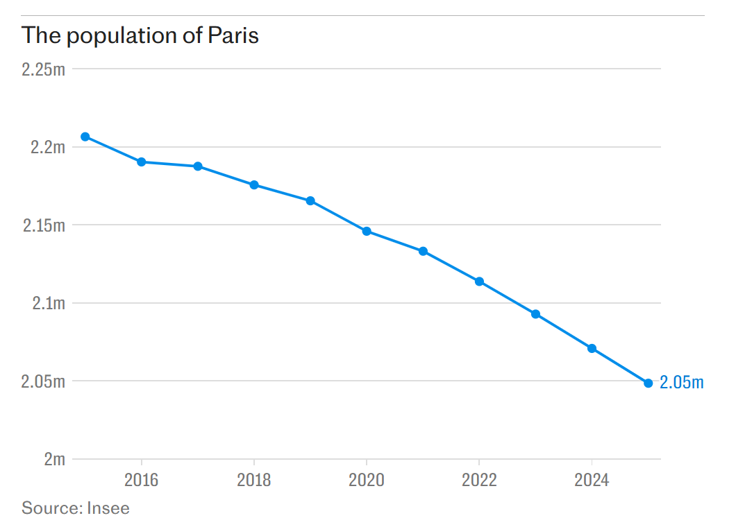 În ultimul deceniu, Parisul a pierdut peste 120.000 de locuitori – o medie de 12.200 de persoane pe an, în ciuda faptului că nașterile depășesc numărul deceselor.