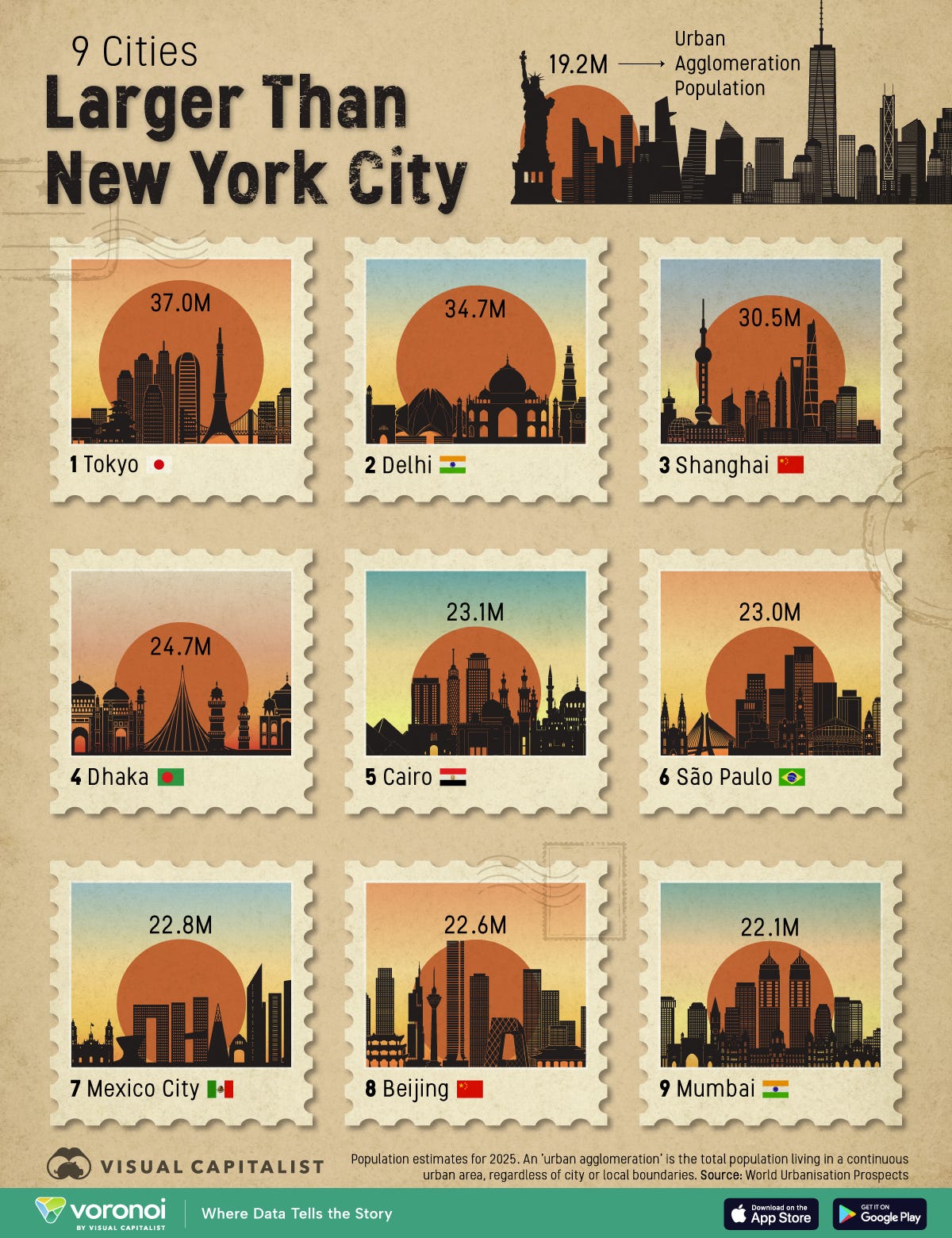 Demografice. New York-ul are o populație echivalentă cu cea a României, dar nu este cel mai mare oraș din lume. Acest loc este ocupat de Tokyo cu o populație aproape dublă față de cea a României.