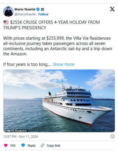 Marketing. Compania de vase de croazieră Villa Vie Residences a anunțat un pachet turistic cu o călătorie în jurul lumii timp de patru ani, cât va dura președinția lui Donald Trump. Pachetul se numește „Skip Forward”.