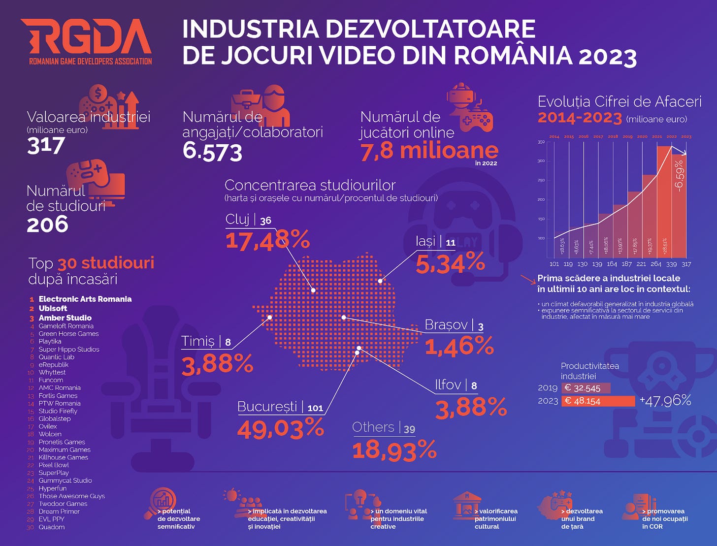 Gaming. În 2023, industria dezvoltatoare de jocuri video din România a înregistrat o cifră de afaceri de 317 milioane de euro.