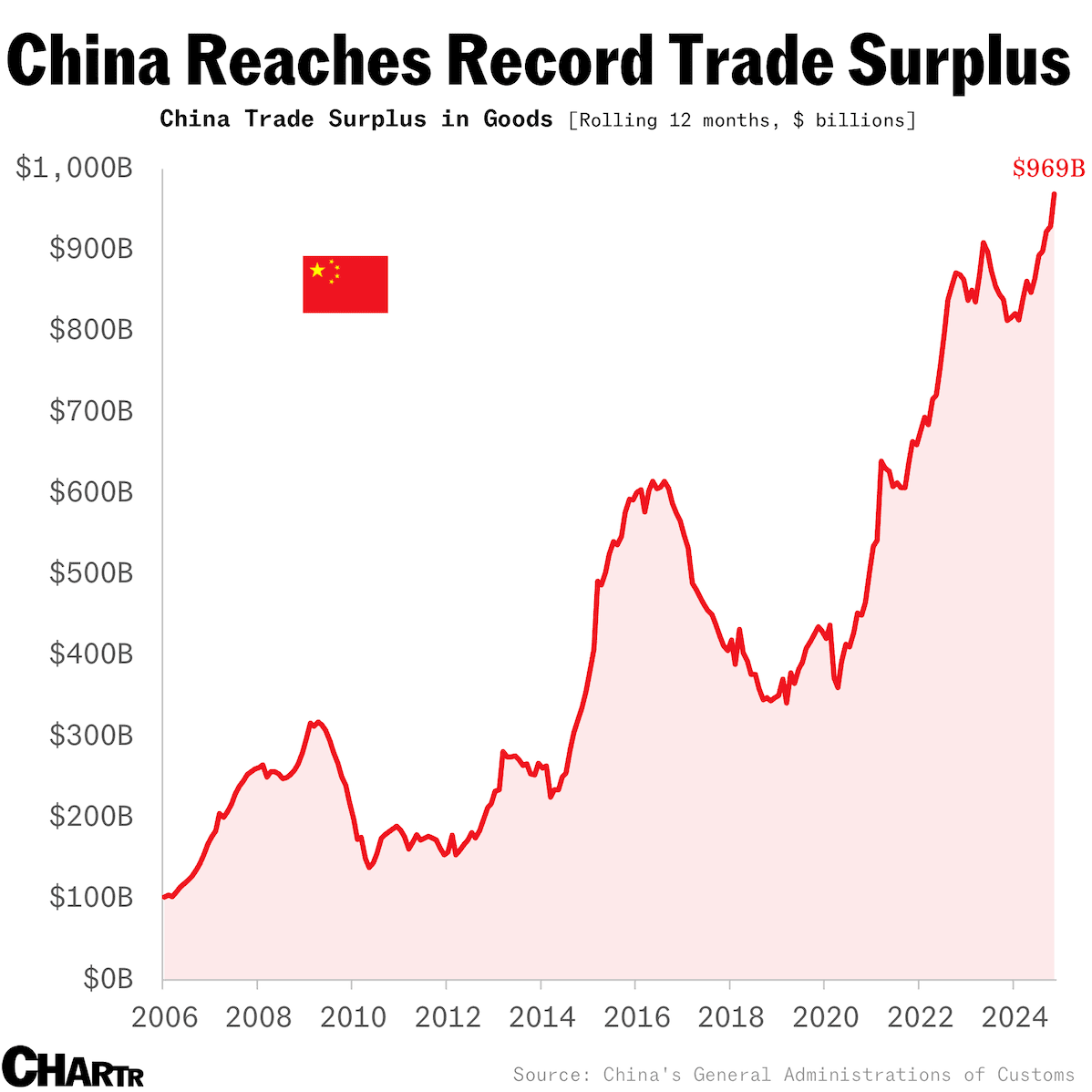Astfel, excedentul comercial se va apropia de 1000 de miliarde de dolari la finalul lui 2024.