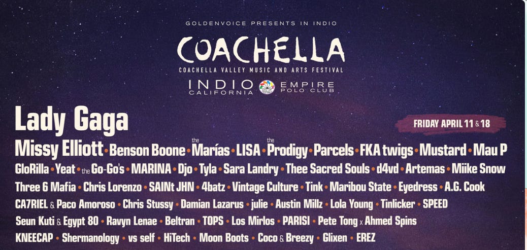 Festival. Lineup-ul Coachella 2025. În întregime, aici.