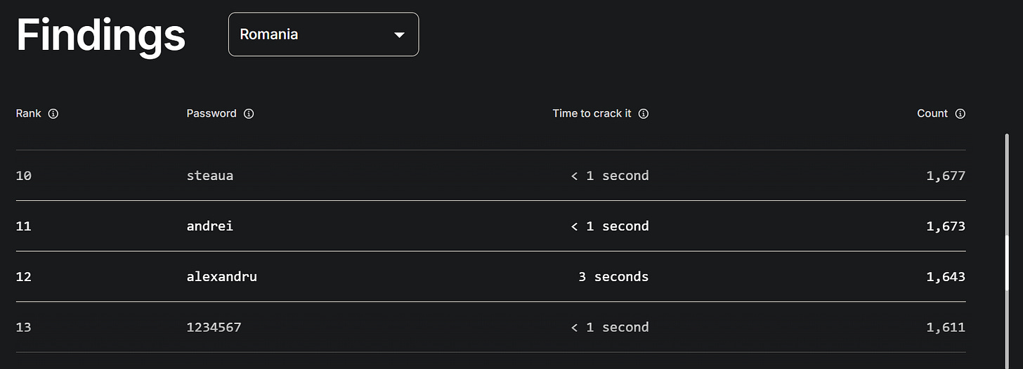 Cel puțin 1.677 de români au ca parolă la diverse conturi „steaua”, iar 3.584, pur și simplu, „parola”. De aici.