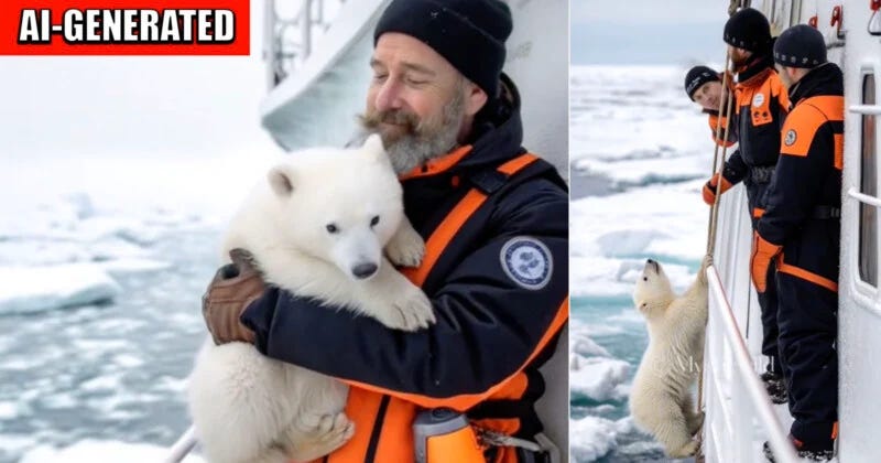 Un clip fals, generat cu programe AI (îl vezi un pic mai jos), a adunat pe TikTok 126 de milioane de vizualizări și se viralizează acum și pe Instagram. Prezintă un ursuleț polar „salvat” din apele înghețate de oamenii de pe un vas. Mulți cred că imaginile sunt reale.