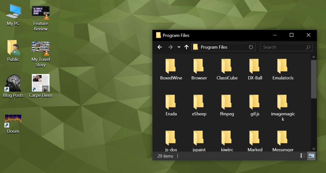 Design. Site-ul personal al lui Dustin Brett îți creează iluzia că ai pătruns în computerul său. E un desktop virtual, cu (cam) tot ce a produs drept conținut online.