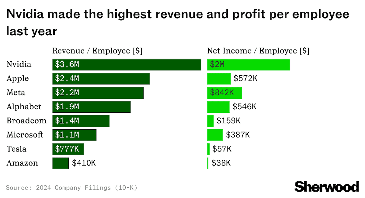 Economie. Cât profit produce, în medie, un angajat Nvidia, pe an.