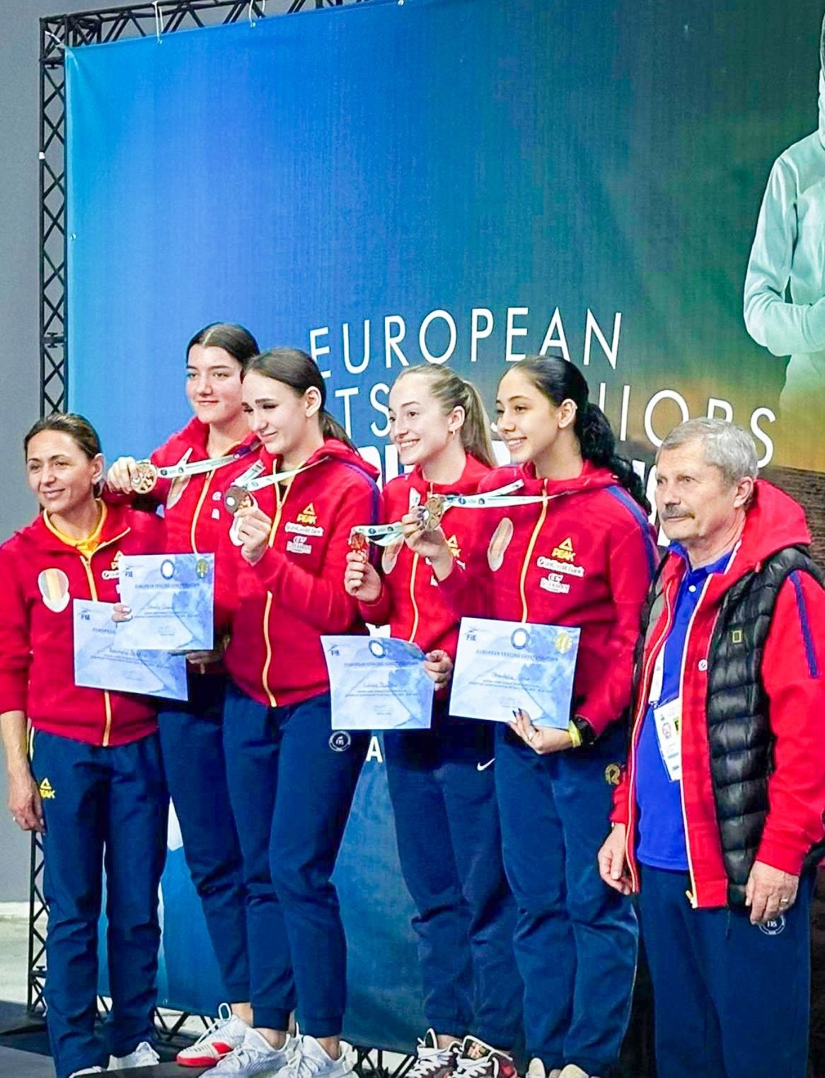 Echipa României de sabie feminin juniori a câștigat medalia de aur la Campionatul European de Cadeți și Juniori din Antalya. Rosemarie Benciu, Amalia Covaliu, Catinca Dumitru și Anastasia Fusea au învins în finală echipa Franței, după o revenire spectaculoasă.