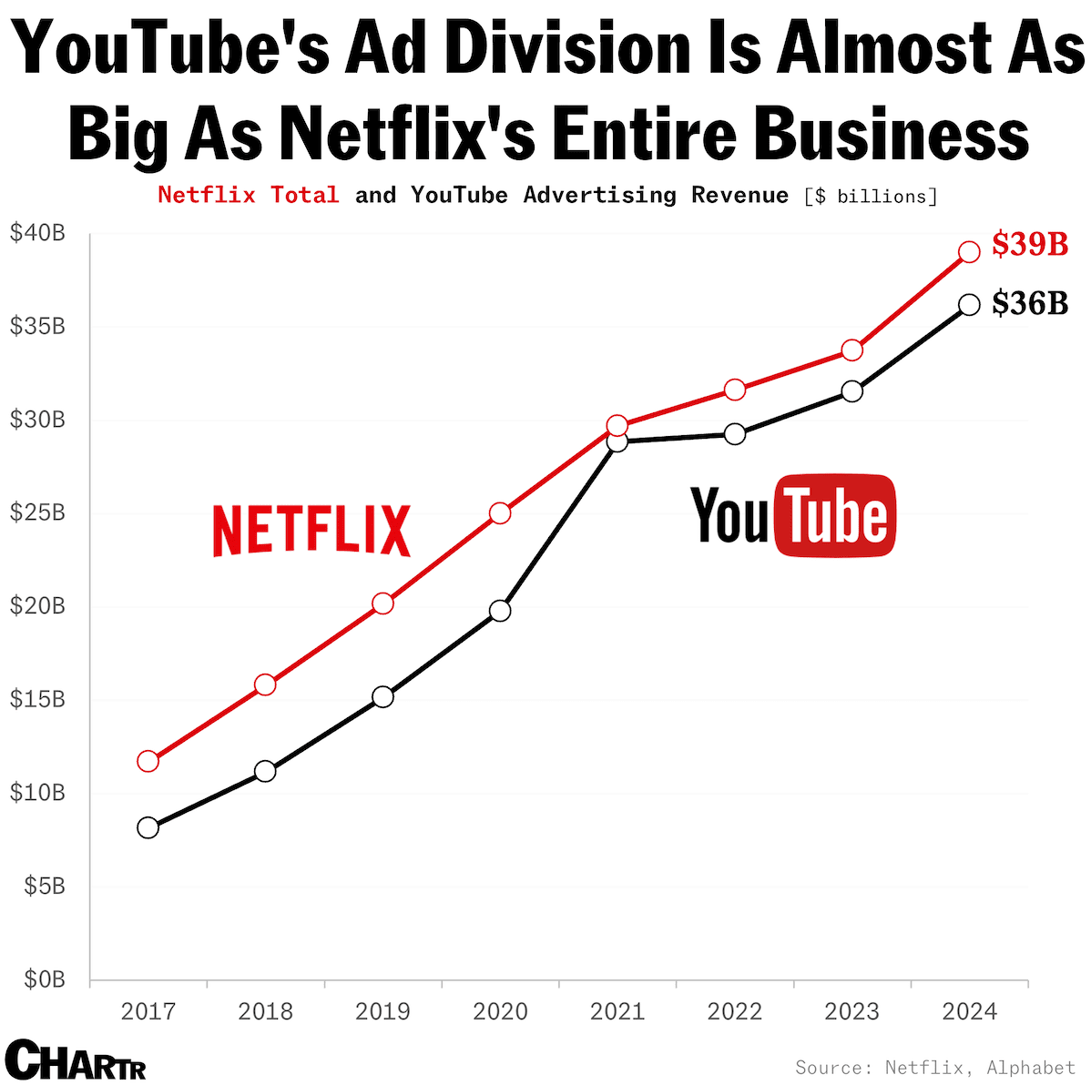 Youtube nu produce filme, dar are venituri din reclamă apropiate de cele totale ale Netflix