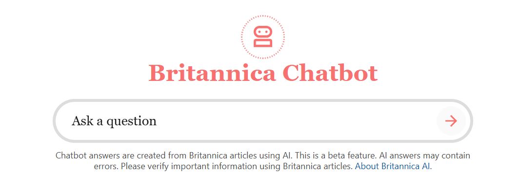 Search. Encyclopedia Britannica, înființată în 1768, a lansat un chatbot AI care răspunde la întrebări scotocind prin conținutul său online. Funcționează ca un motor de căutare așadar.