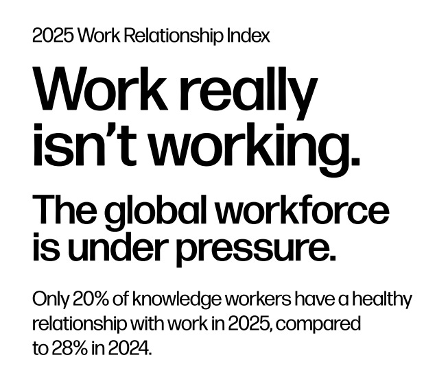 Studiu privind angajații de birou. Recenta ediție 2025 a studiului HP Work Relationship Index relevă că doar 20% dintre angajații de birou consideră că au o relație sănătoasă cu munca, procent în scădere față de anul trecut.