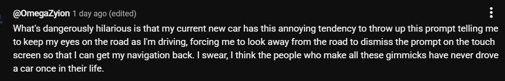 Însă editorii au fost prea porniți și au uitat să-i intervieveze, spre echilibru, și pe unii utilizatori dintre cei cărora le place ideea de ecran tactil în automobil – că or fi și de ăștia.
