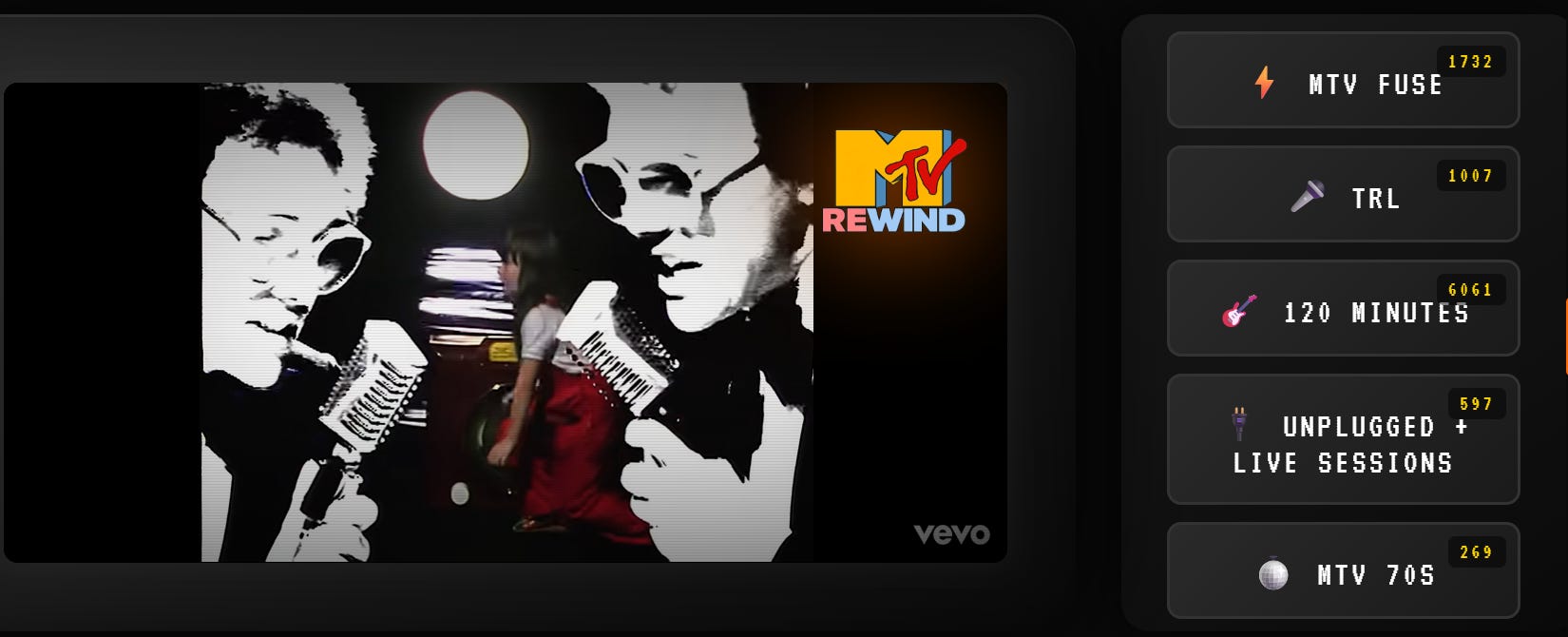 Nostalgii. Cum să te bucuri din nou de MTV cel închis: deschizi acest site cu zece canale tematice și 42.000 de clipuri.