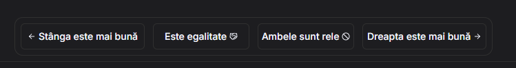 Cum votează lumea? Click dreapta sus pe start voting. În fereastra care se deschide, tastezi promptul. Obții două variante de text (de la LLM alese aleatoriu), fără să ți se spună ce LLM le-a livrat.