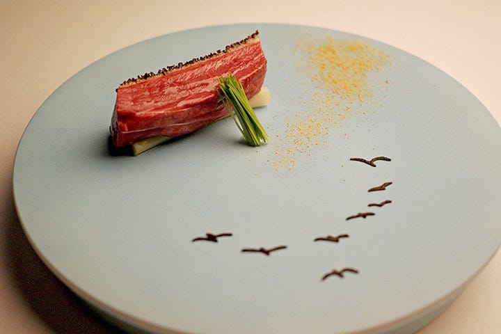 Sony AI l-a cooptat în echipă, ca advisor pentru Gastronomy Project, pe celebrul chef Hajime Yoneda, creatorul unui restaurant din Osaka cu deja trei stele Michelin (poza aceasta e șterpelită din meniu).