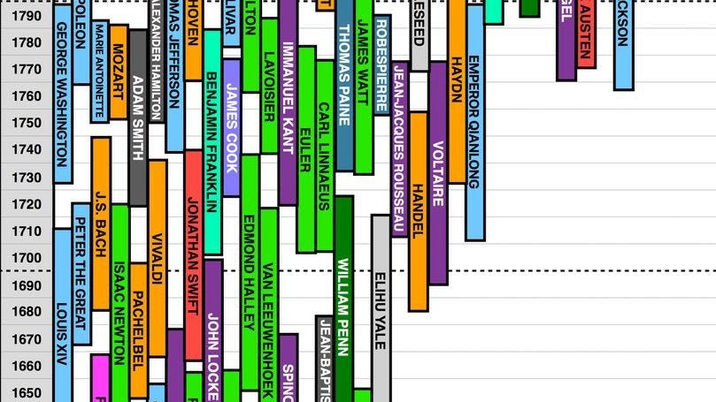Dacă vrei să te relaxezi și să-ți verifici cunoștințele de cultură generală, îți dau adresa unor grafice care indică ce personalități ale omenirii au fost contemporane și pe ce perioade de timp.
