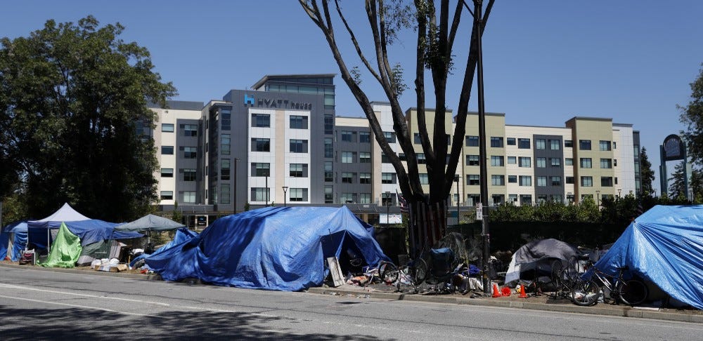 Lângă noul campus al Apple sub formă de navă spațială, din Cupertino, care a costat 5 miliarde de dolari (mobilat cu fotolii Louis Vuitton de piele, pe comandă - după cum bârfește lumea), a apărut o comunitate de oameni fără adăpost - sau, în fine, trăind în adăposturi improvizate, formată din victime ale chiriilor ridicate din Silicon Valley. În respectiva comunitate puteai întâlni de la un fost cercetător într-un laborator biotech la un fost șofer la Google.