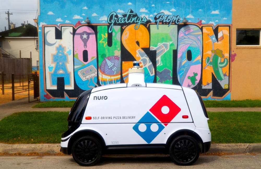 Acest robot livrează pizza Domino, experimental, în Houston, Texas.